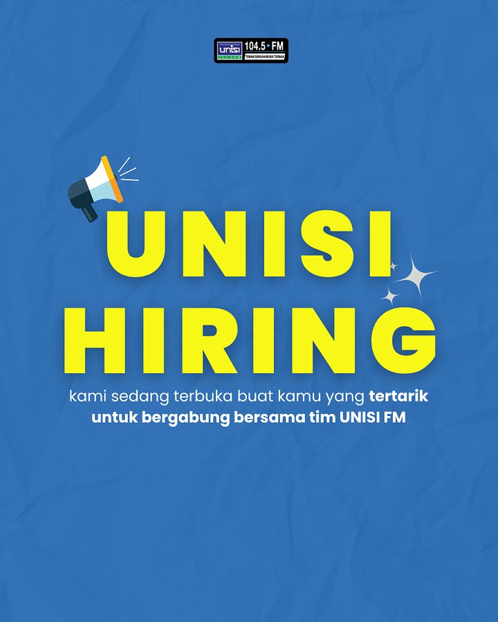 Hello Intelektual Mudaa! Siapa nih yang cita citanya pengen jadi penyiar? ???????????? Kalau kamu memenuhi kualifikasi, silakan langsung kirim CV, Surat Lamaran, dan Voice Sample kamu ke infounisifm@gmail.com (cc ke info@unisifm.com) dengan subjek Penyiar ✨ Come and join us! ???? Dengerin UNISI 104.5 FM […]